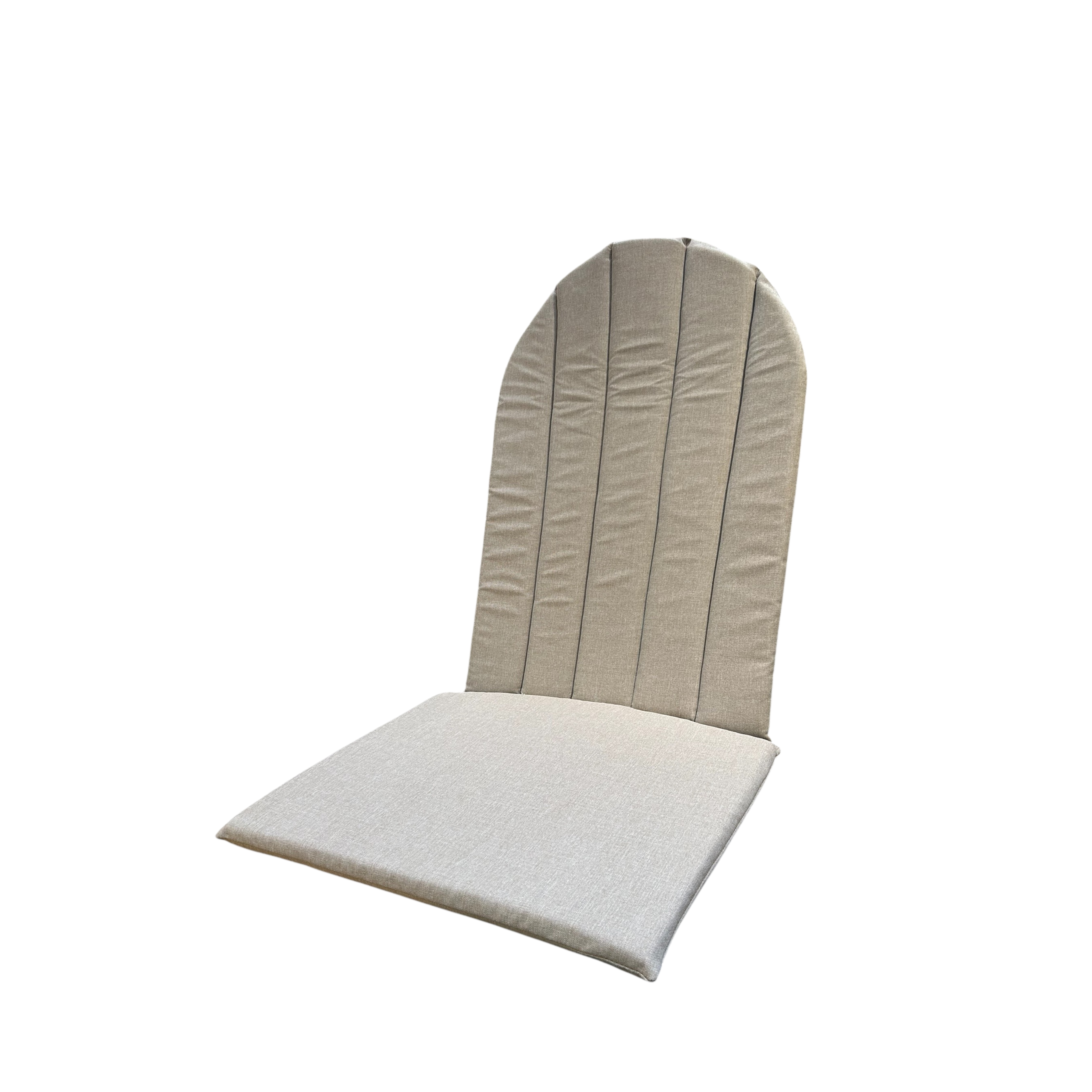 Passgenaues Kissen für den Adirondack-Stuhl aus sandfarbenem Stoff – eine zusätzliche Schicht Luxus, die Komfort und klassisches Design vereint.