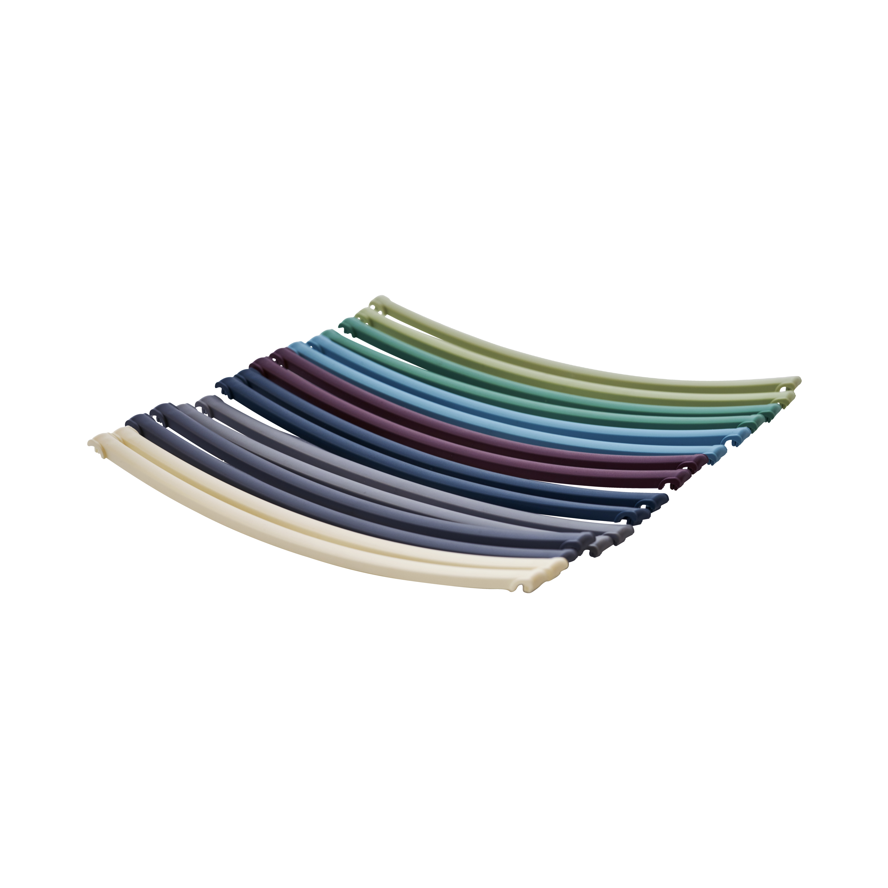 Ein Set austauschbarer, wetterbeständiger Lamellen in ausgewählten Farben — entwickelt für die MOOD Classic Stühle mit schmalen Lamellen und geliefert als komplettes Set mit 16 Lamellen.