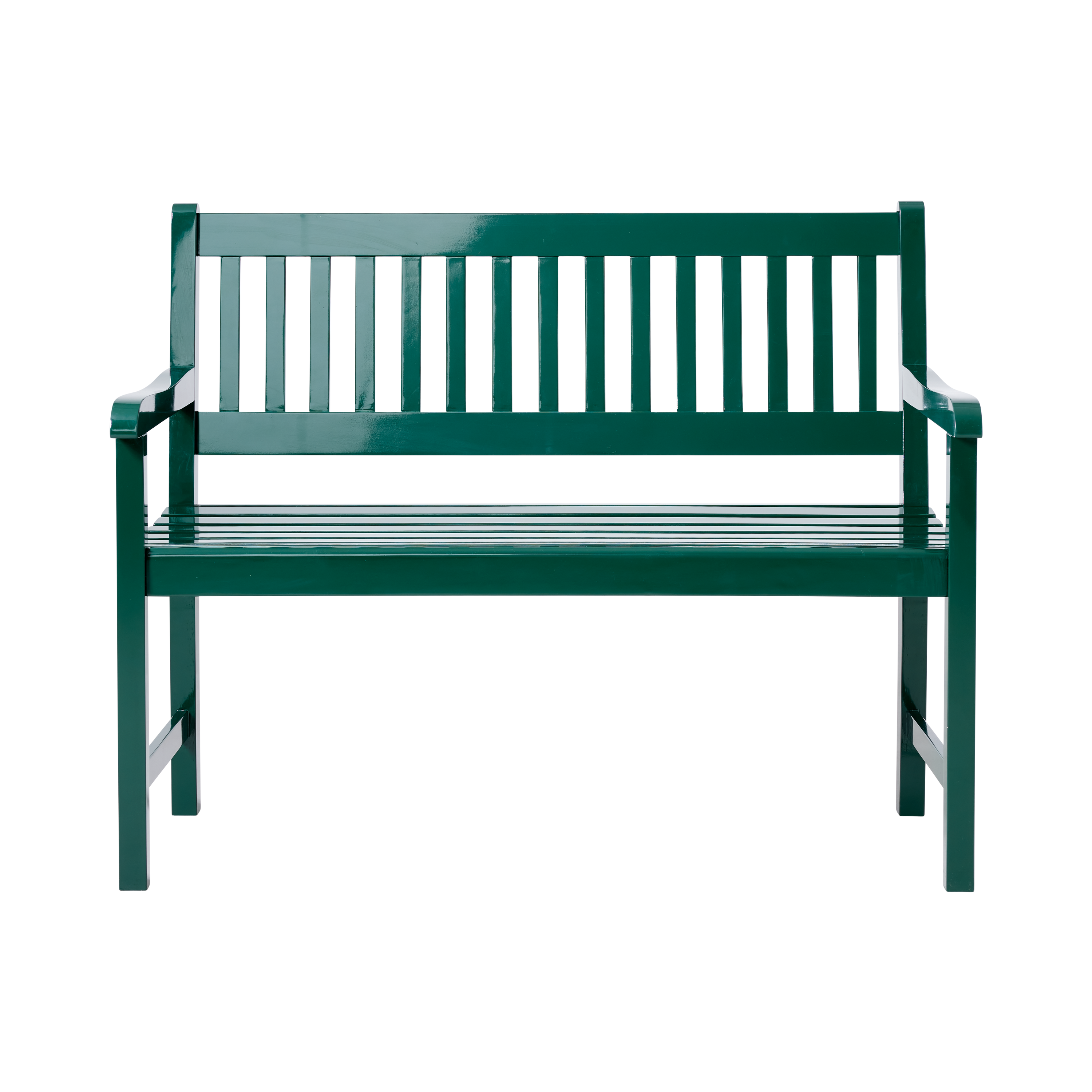 Inspiriert von klassischen englischen Parkbänken – eine elegante Zweisitzer-Bank aus Mahagoni, lackiert in klassischem Englischgrün. Geschaffen für Gespräche, Morgenkaffee und kleine Pausen im Freien.