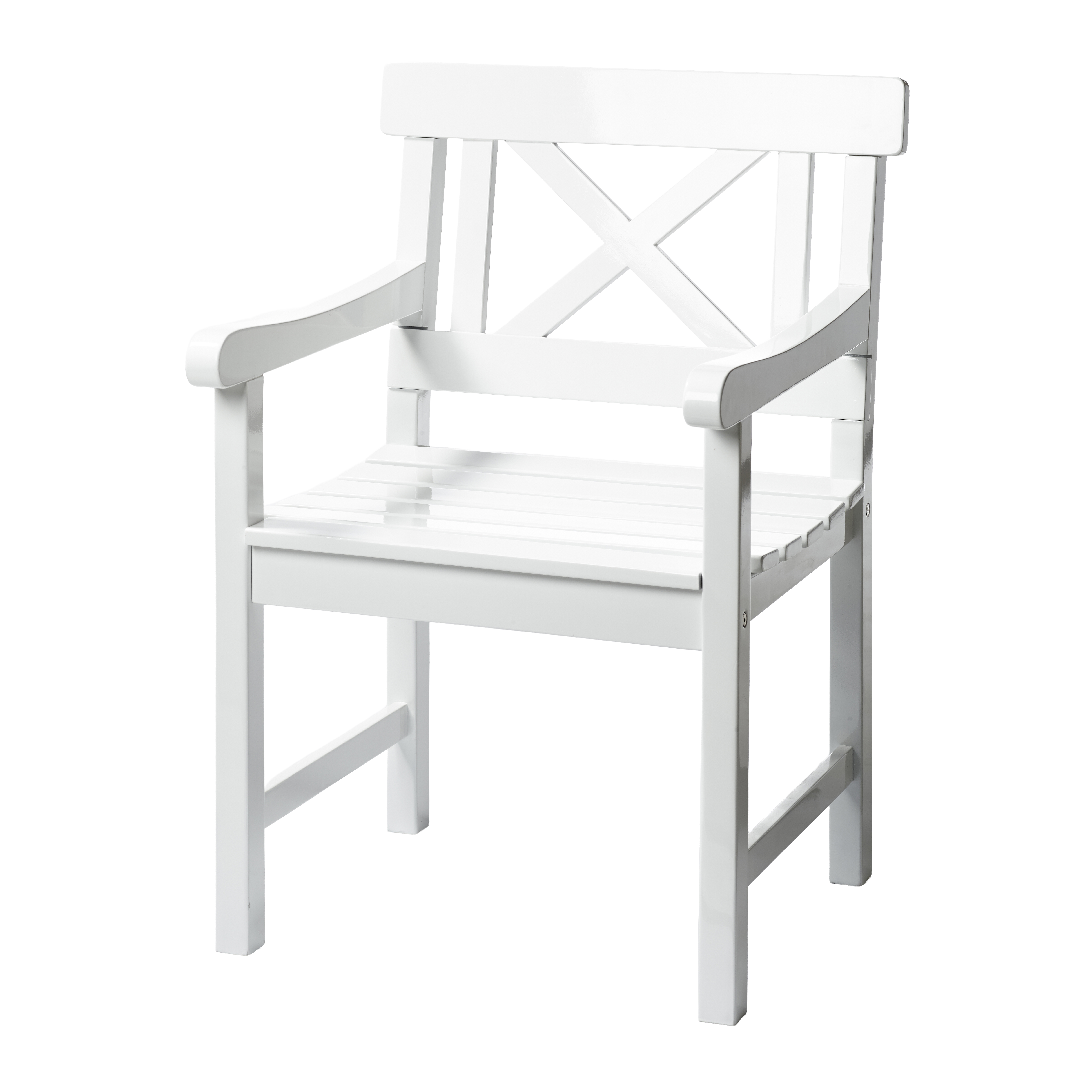 Ein klassischer Gartenstuhl aus weiß lackiertem Mahagoni mit einer großzügigen Formensprache, die vom ersten Moment an Ruhe vermittelt. Der Sofiero-Stuhl hat weiche Linien, eine leicht zurückgelehnte Sitzposition und einen Ausdruck, der sich harmonisch in Gärten, Terrassen und Ferienhäuser einfügt.