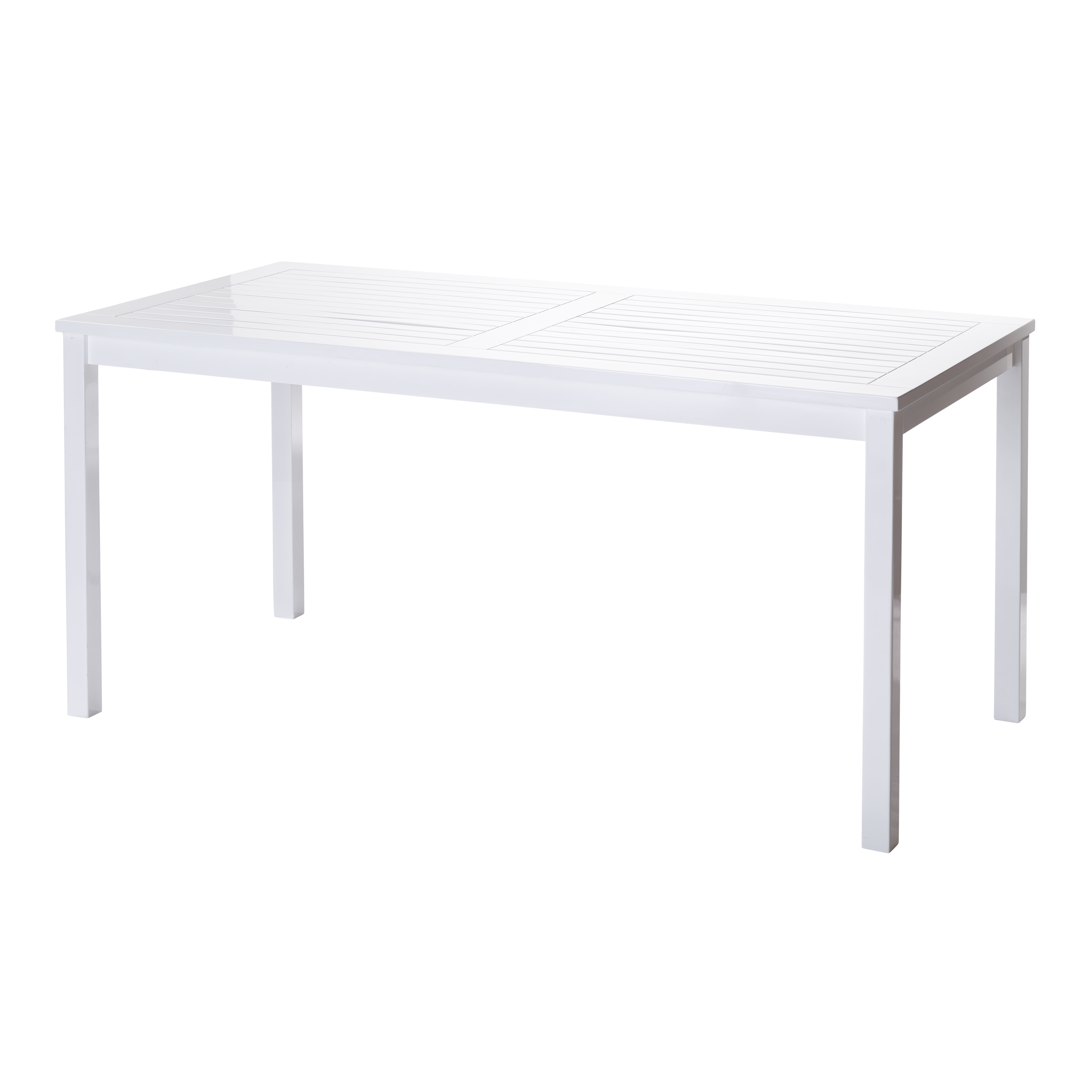Ein klassischer Gartentisch aus weiß lackiertem Mahagoni mit klaren Linien und einer ruhigen, großzügigen Formensprache – perfekt für den Alltag im Freien.
