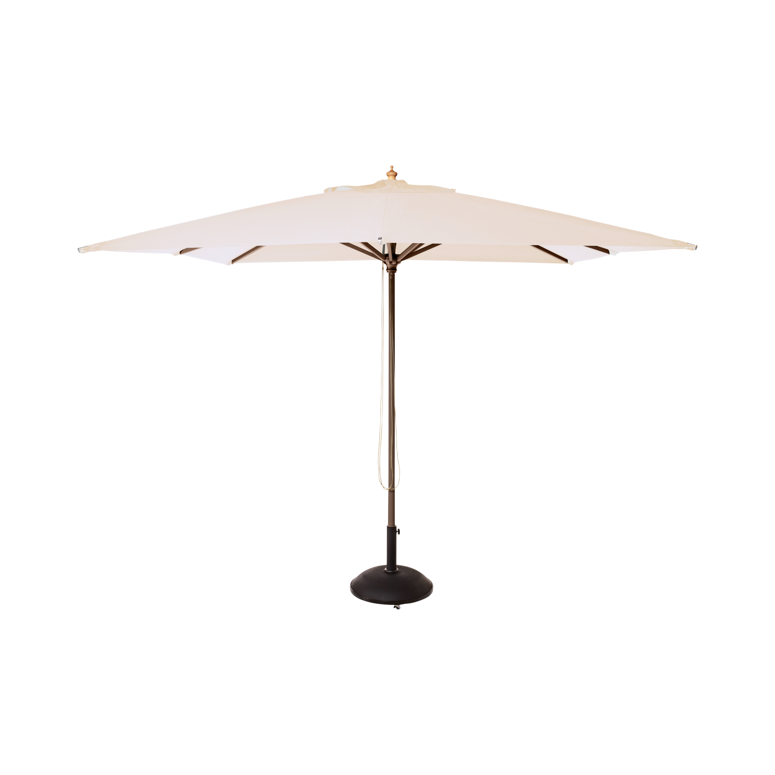 Alezio lässt sich leicht über ein Seil-/Pulleysystem öffnen, und die acht stabilen Streben sorgen für eine robuste Konstruktion, die sicher steht, wenn der Schirm geöffnet ist.