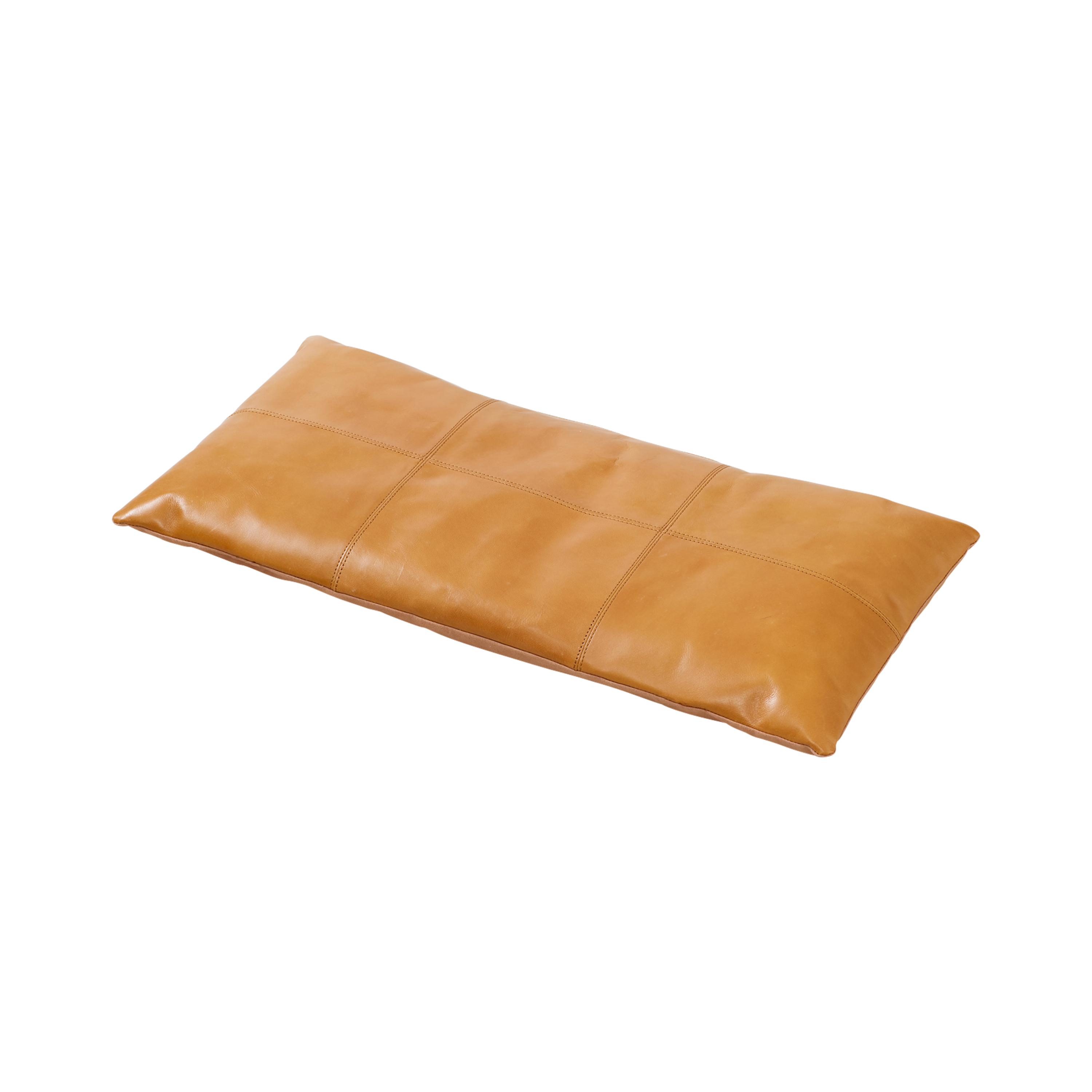 Das Kissen ist aus hochwertigem Leder handgenäht und verleiht sowohl Komfort als auch eine exklusive Ausstrahlung, die das grafische Design und das natürliche Material der Bank harmonisch unterstreicht.