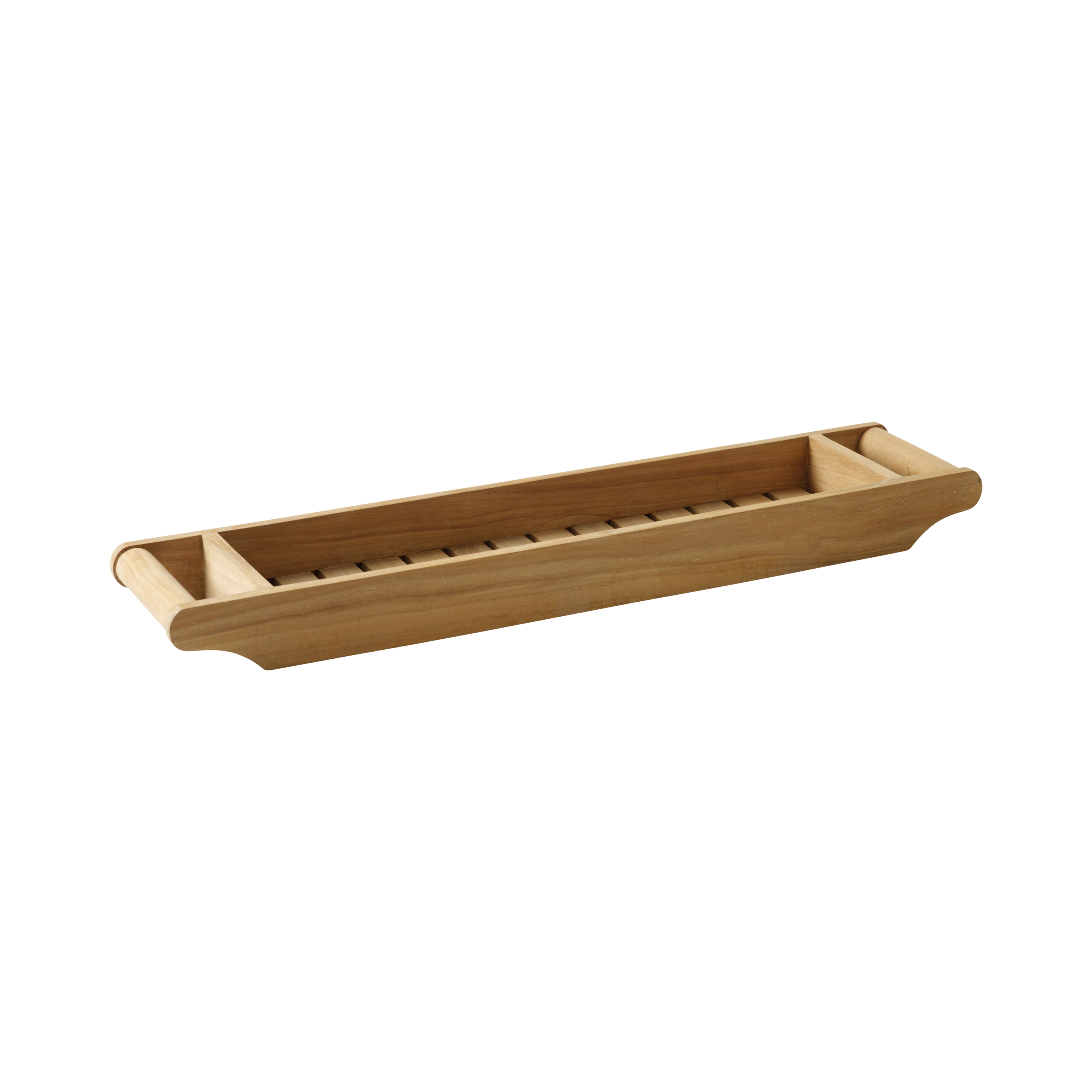 Ein klassischer Badewannenkorb aus massivem Teakholz, der deine wichtigsten Dinge sammelt und ein organisiertes Badeerlebnis schafft – sowohl in der Badewanne als auch im Alltag.