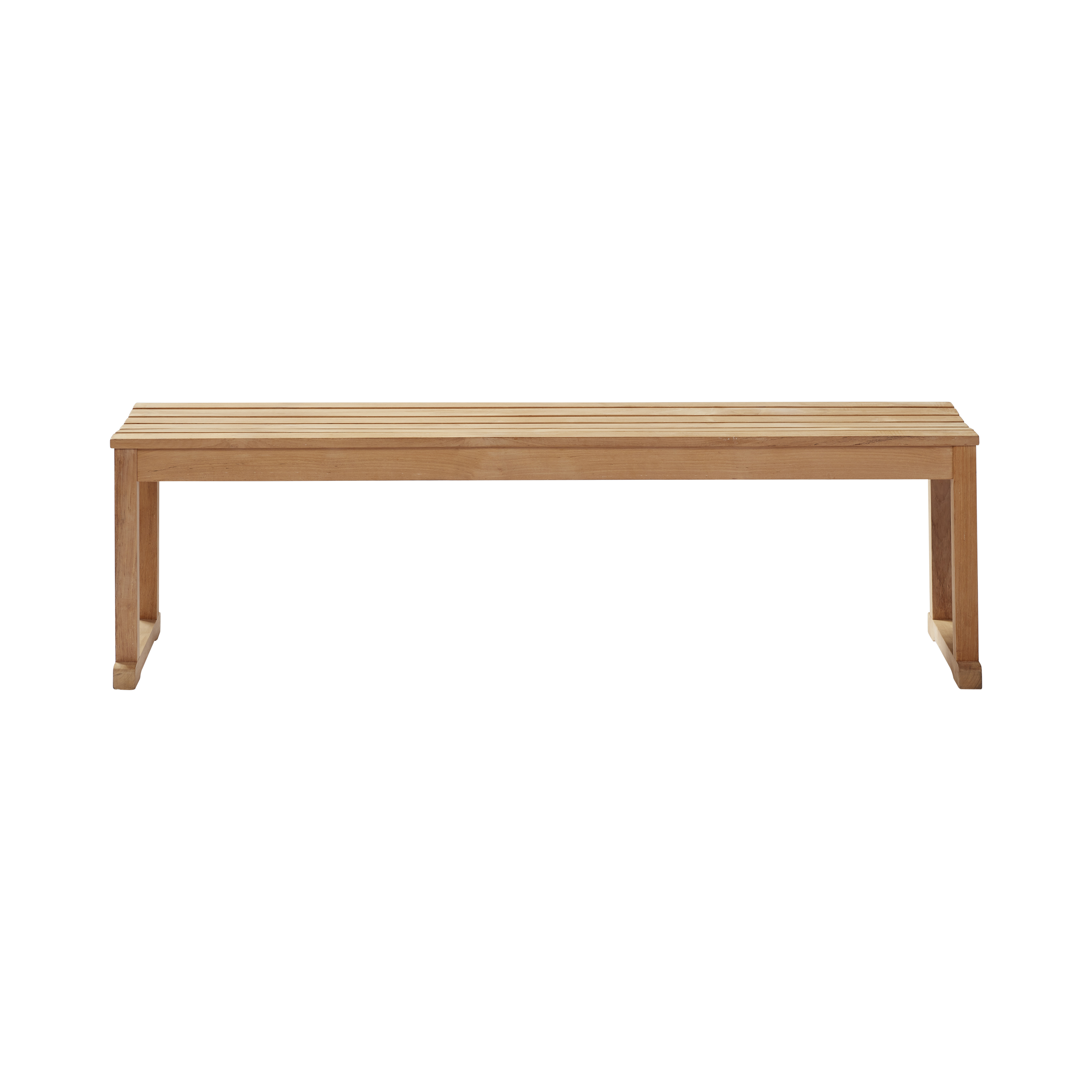 Die Vega Drei-Personen-Bank aus massivem Teakholz bietet zusätzlichen Sitzplatz, ohne an Leichtigkeit im Ausdruck zu verlieren.