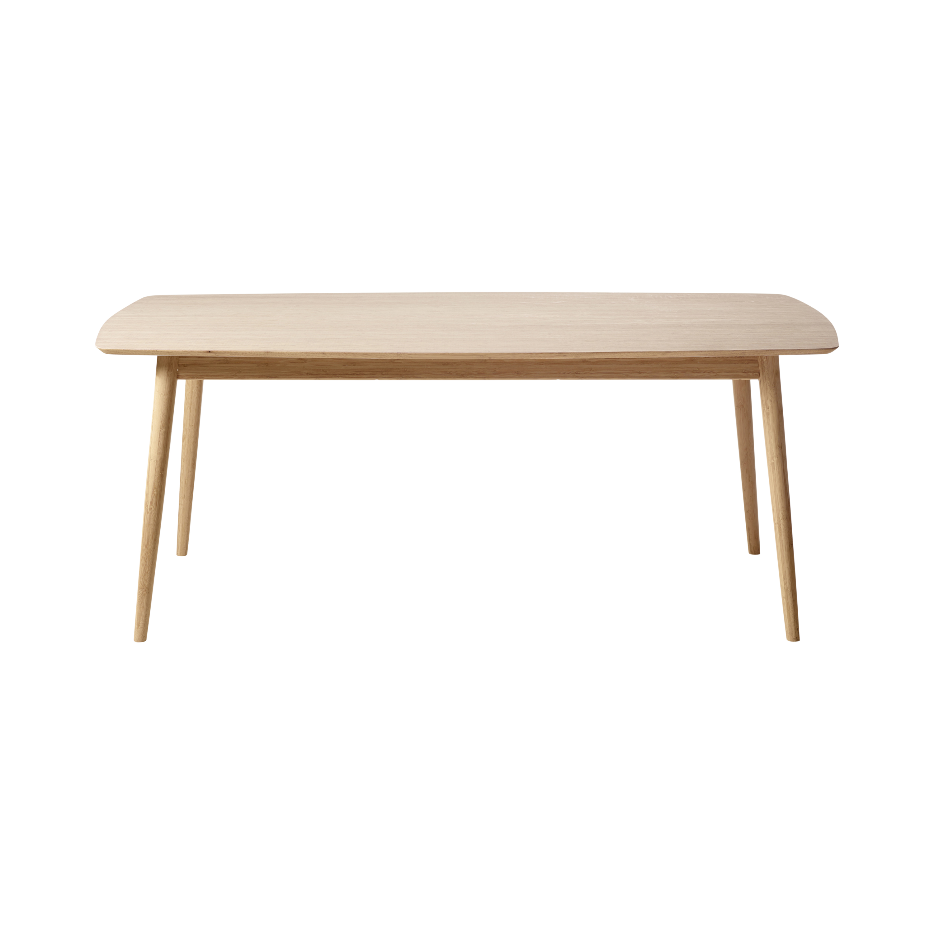 Ein warm wirkender und natürlicher Esstisch aus massivem Bambus, entwickelt für kleinere Wohnungen und moderne Umgebungen. Die schlichte Form bietet bequemen Platz für vier – und ermöglicht es, bis zu sechs Personen am Tisch zu versammeln.