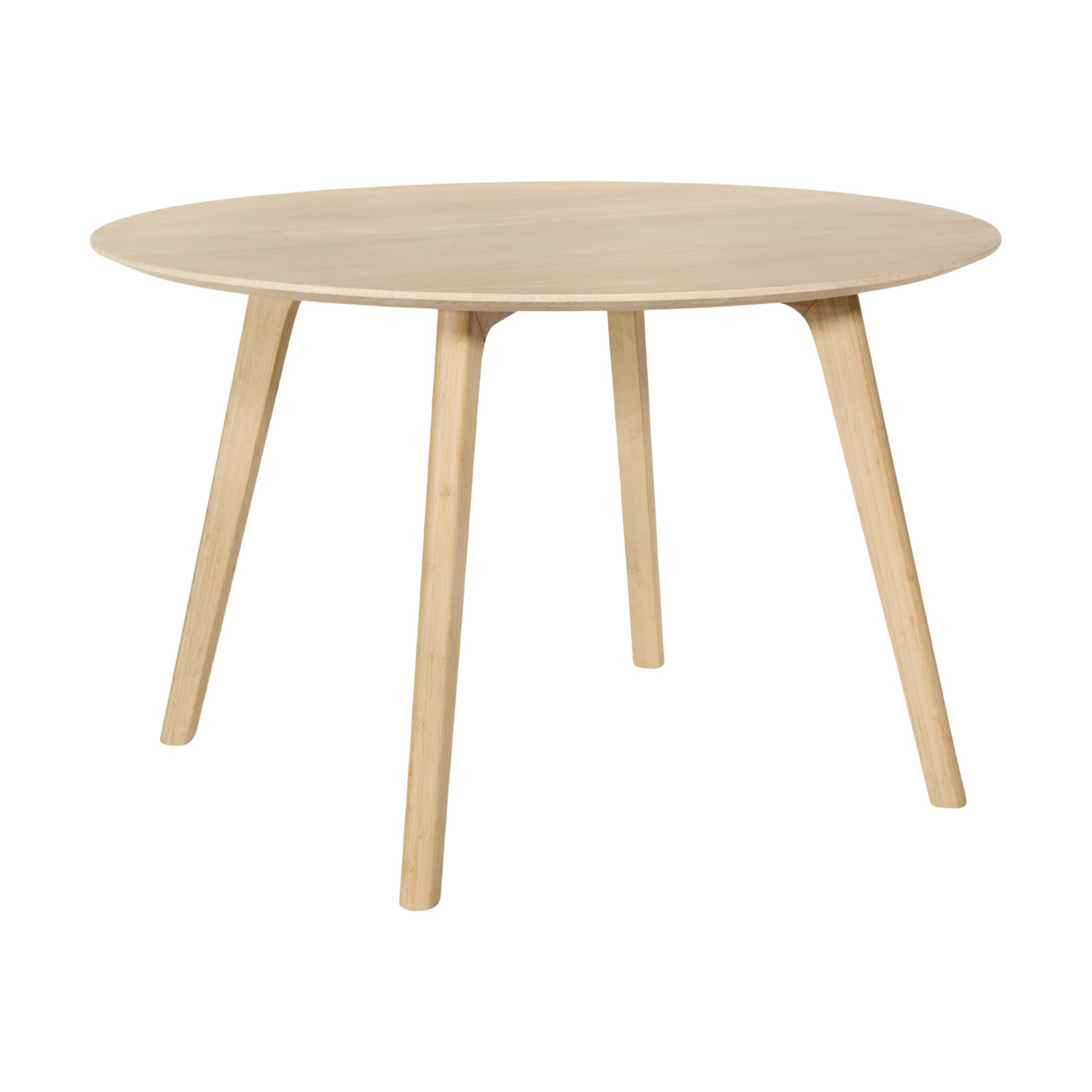 Ein runder Esstisch aus Bambus, geschaffen für Nähe und Gespräche. Mit Platz für vier Personen passt er perfekt in kleinere Räume.