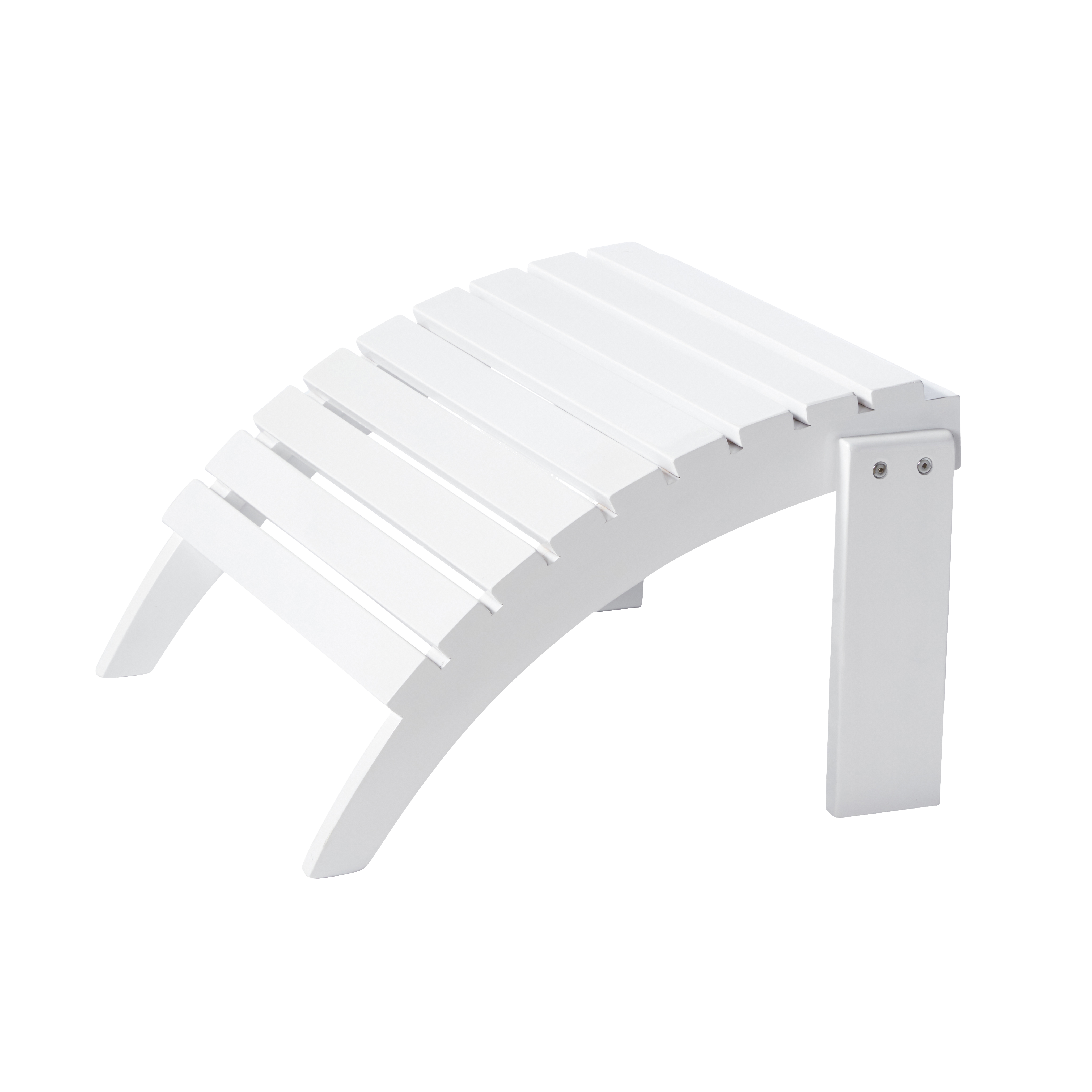 Der Fußhocker vervollständigt das Adirondack-Erlebnis. Mit denselben weichen Linien und soliden Materialien bietet er Platz, um die Beine auszustrecken und die Ruhe zu genießen – hier aus weiß lackiertem Mahagoni.